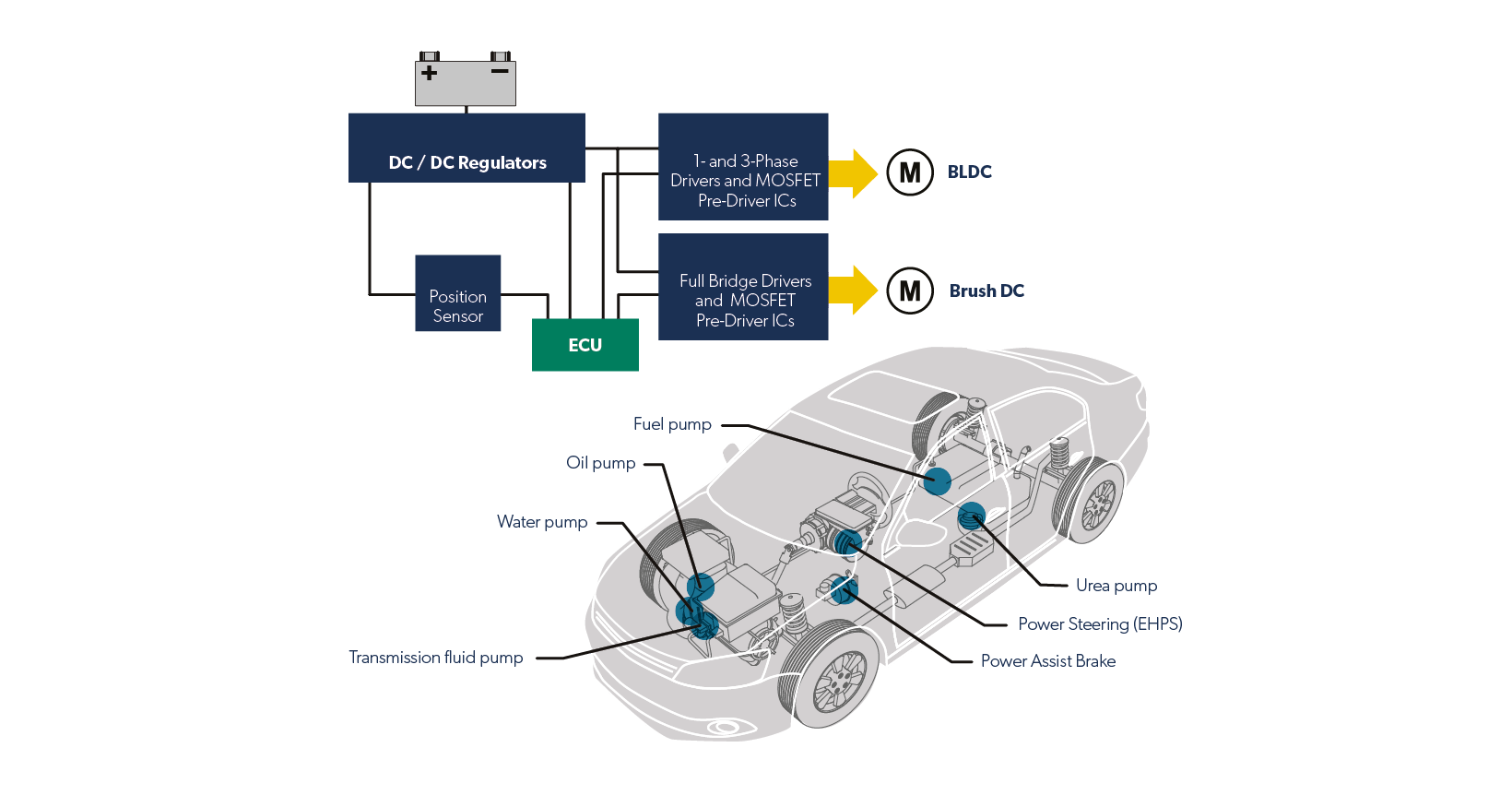 Drive performance in automotive pumps with Allegro’s full lineup of brush and brushless motor drivers, current sensors, and position sensors.