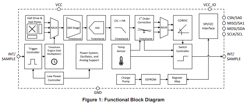The A31301 provides accurate 3D magnetic field sensing and angle calculation, with flexible operating modes and low power consumption for battery-powered and space-constrained applications. Supports SPI and I²C interfaces.