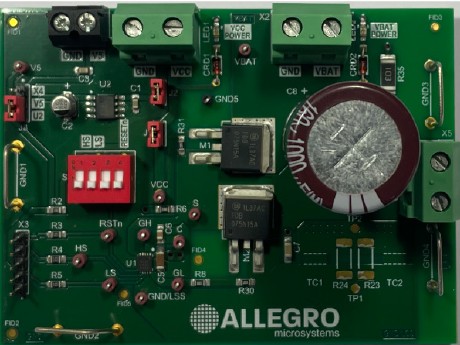 This board provides the basic components required to use the A89500 to drive a motor. The motor can be controlled via an externally supplied PWM signal input on the logic input terminals.
