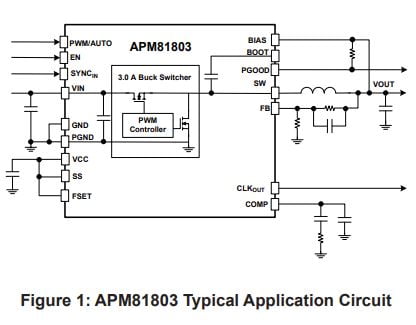 APM81803は、EMIフィルタ、高効率の同期式降圧レギュレータ、超低静止電流 (6µA) の機能を統合することで、電源設計を簡素化してEMIを最小限に抑えます。プログラム可能なスイッチング周波数と包括的な保護の機能も備えています。