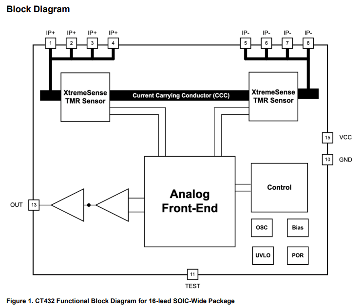 CT432は、高帯域幅、超低ノイズ、5kV絶縁、内蔵の通電導体 (CCC) に対応し、高dV/dt用途で正確な電流測定機能を手強します。5Vで動作します。