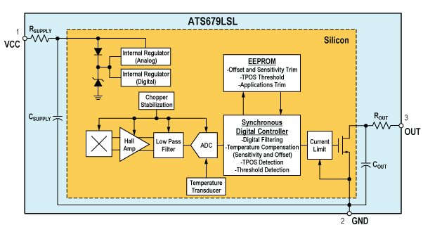 • SL package provides a fully integrated solution with a non-rare-earth back-biasing magnet and EMC protection circuit