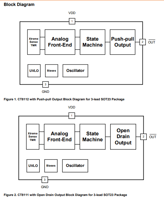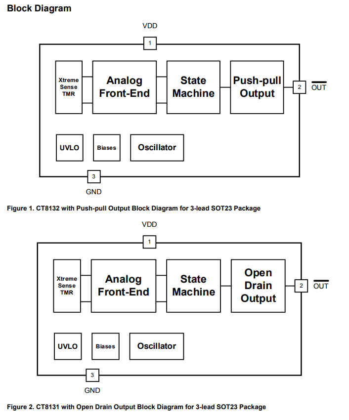 CT81xx 系列磁传感器可在工作温度范围内进行稳定的磁感应工作。凭借超高灵敏度,CT81xx 产品可在系统中实现更大气隙或使用更小尺寸/更低成本的磁体,同时工作电流低至 110nA。因此,对于要求低功耗的电池供电产品而言,这些磁传感器是理想的选择。